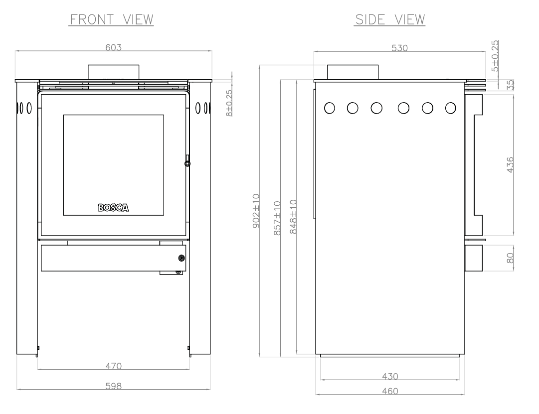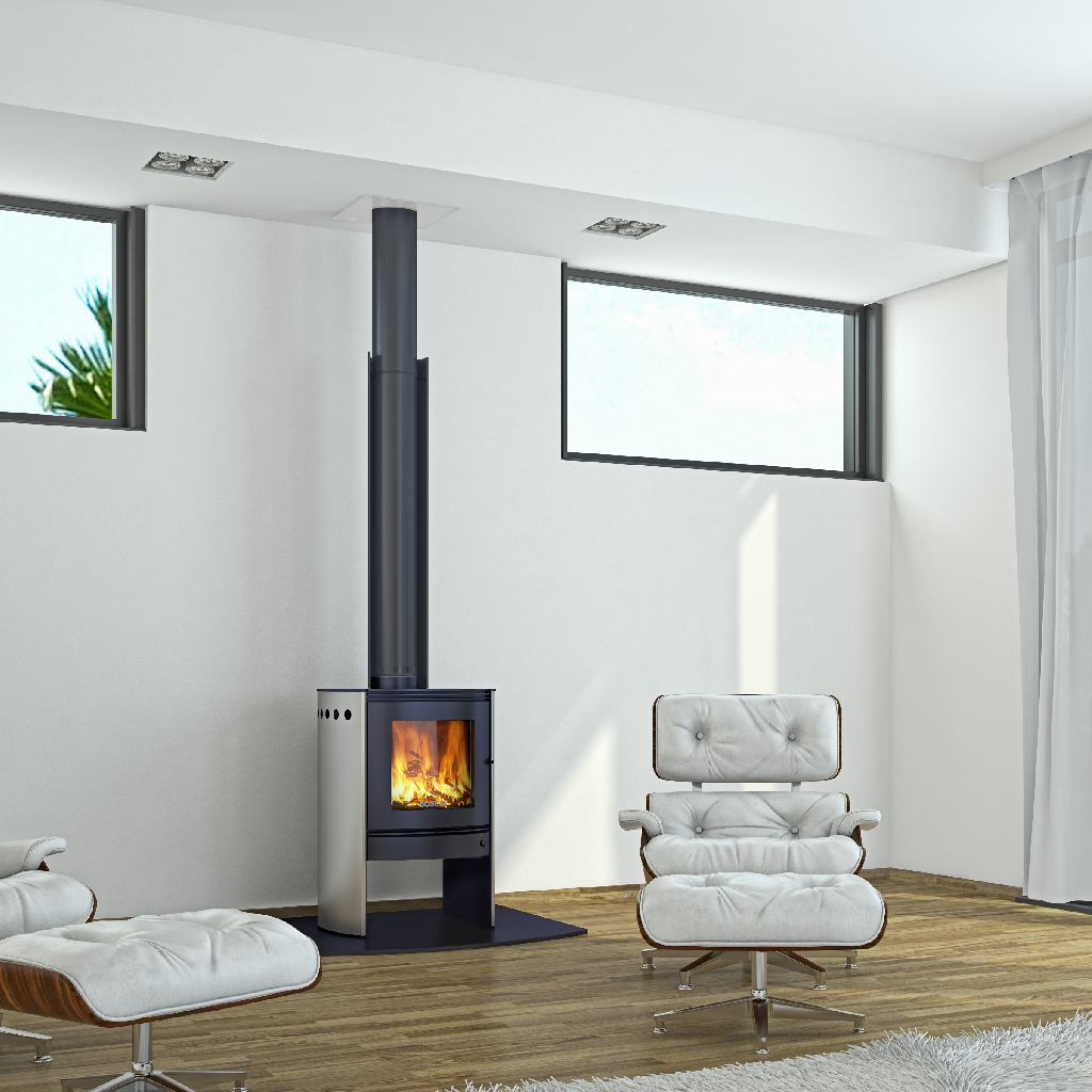 The Bosca Spirit 550 Wood Fire has been designed to efficiently heat large open plan or high ceiling homes and living areas. It features an efficiency rating of 69%, emission rate of 0.9g/kg and a hefty 19kW peak heat output. The 550 boasts a unique central air injection system to achieve a hotter and cleaner burn.