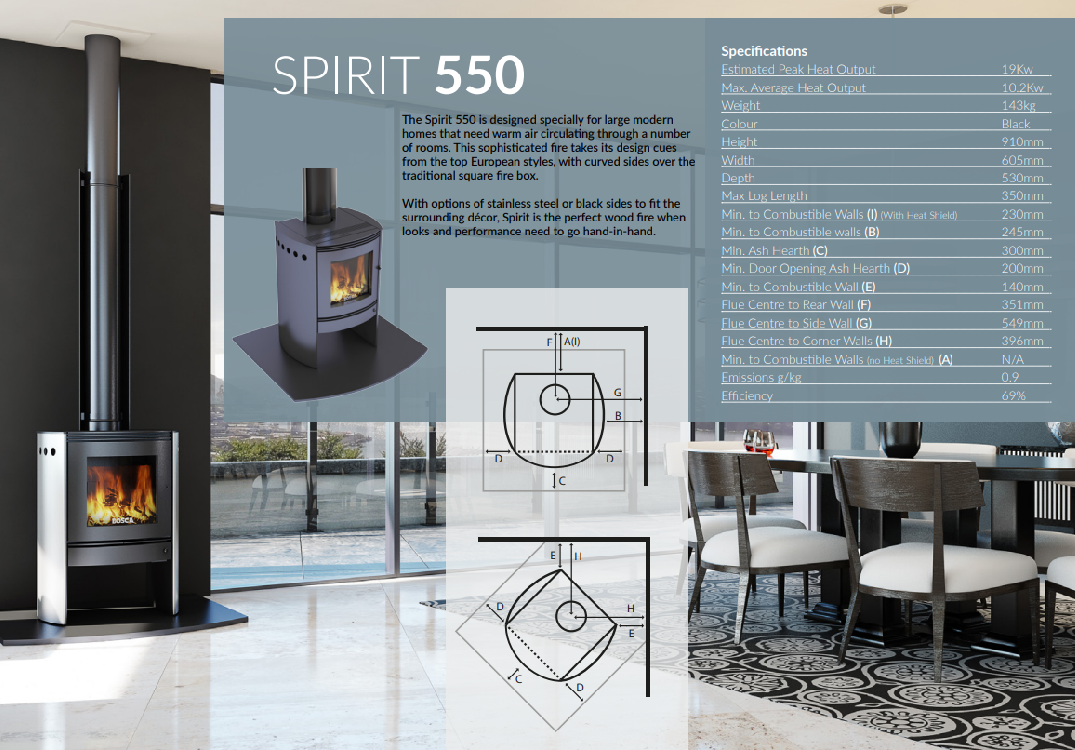 The beautiful European styling and curved stainless steel sides of the Spirit are aesthetically suited to modern and contemporary decor styles. The fire also features a large display window allowing you to immerse yourself in the visual delight of fire.